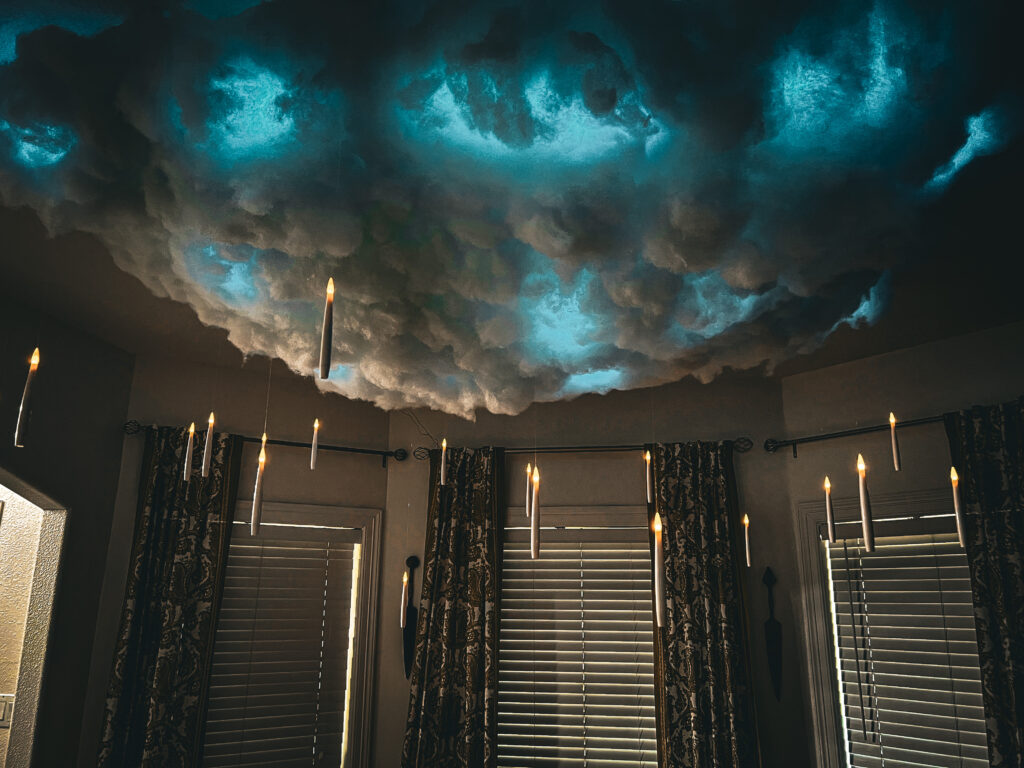 To set the mood, choose the right lighting. Opt for candelabras, taper candles, or elegant chandeliers. The warm, flickering glow will create a hauntingly beautiful ambiance that complements your sophisticated Halloween tablescape. I created a DIY storm cloud complete with floating lights. Let me know if you want an instructional video for how I made my cloud. It’s soooo easy, it’s scary. 🙂 (See what I did there???)