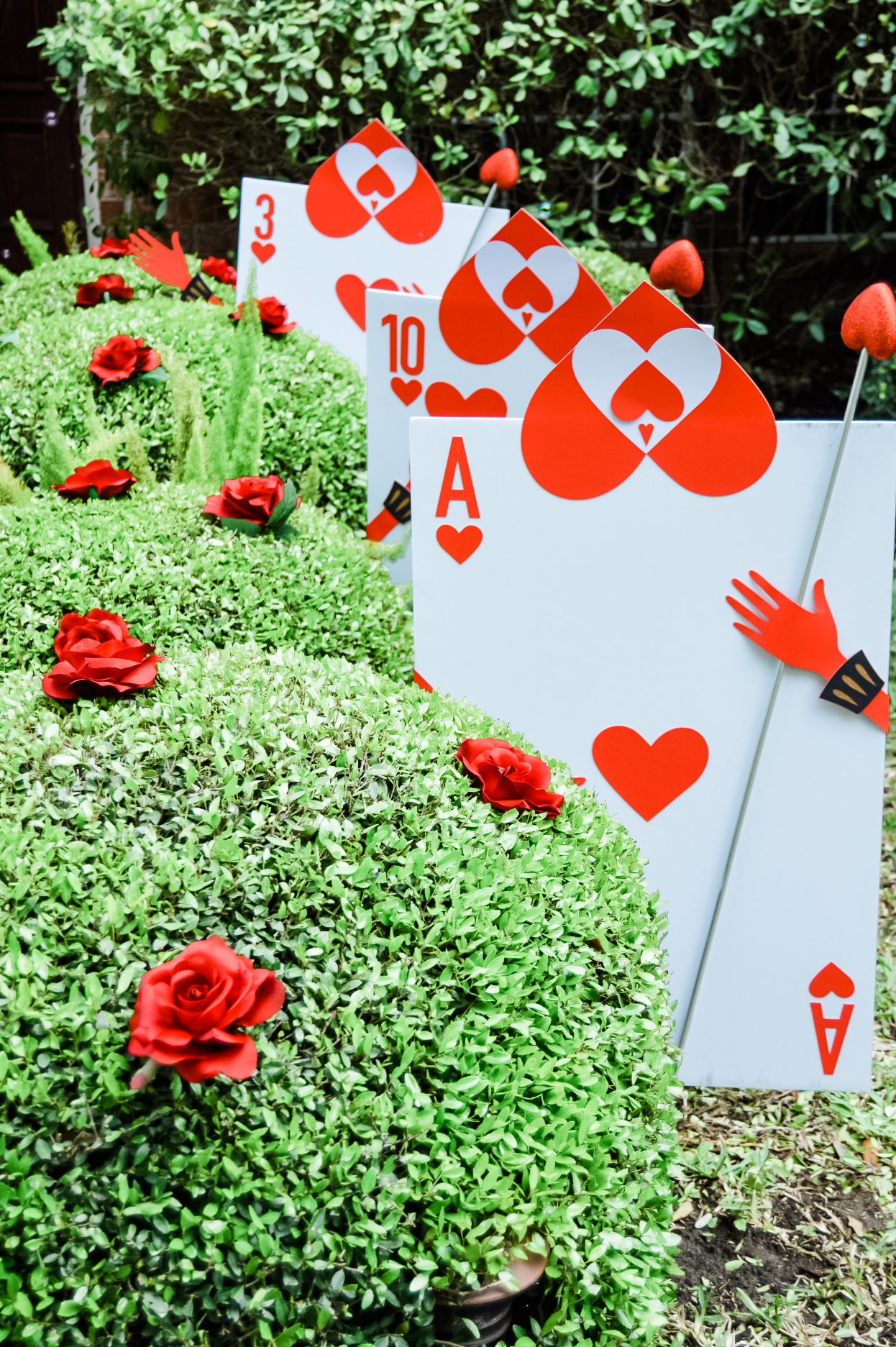 Taking every inspiration that I could from the cartoon itself, I went in. From the mome raths to the Queen of Hearts sandwiches to the the Mad Tea Party, everything was covered. We even had a fun time helping the Hearts paint the roses red. After the fete was over, I did not want to hear, “Off with her head!”