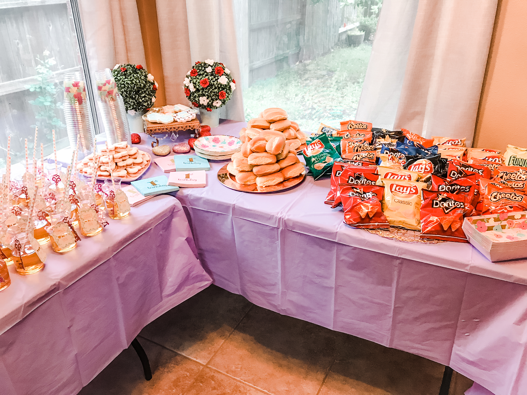 The food was on another level, as far as toddler parties are concerned. Strawberry heart sandwiches, mini hot dogs, an assortment of chips and snacks, and desserts… yes, there were so… many… options. The dessert table was bananas. Did I mention the cake. Yes, I did it all myself. Check out Haute Caketure for cakes and cupcakes!