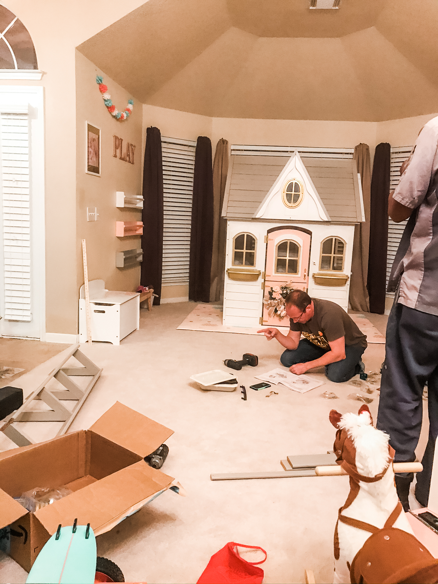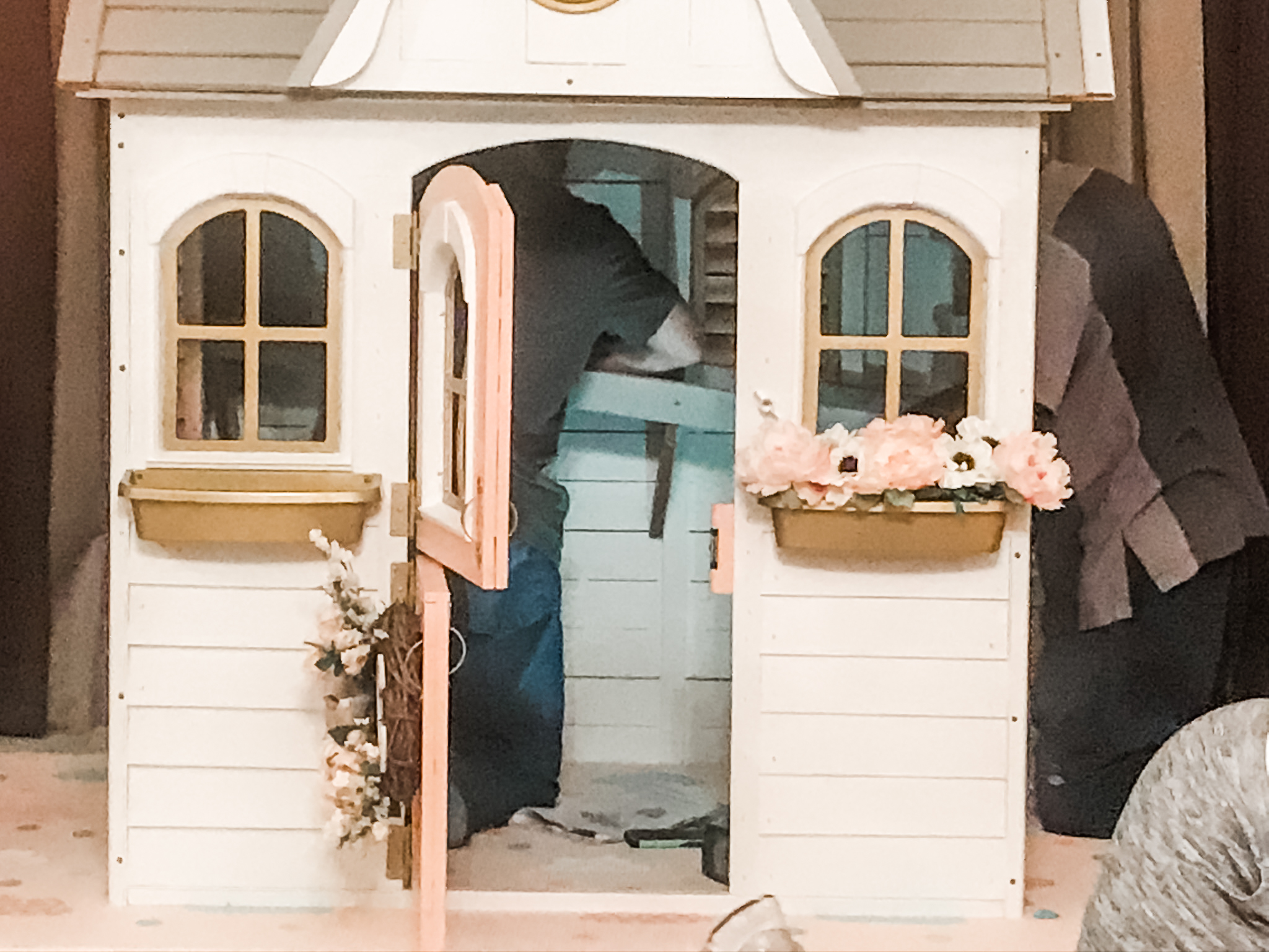 Once I had everything painted and prepped, I just had to wait for Christmas Eve and for Santa (my Dad) to make the delivery. There was nowhere to hide the massiveness of this house at our home and keep little eyes away from it. But once it was here —